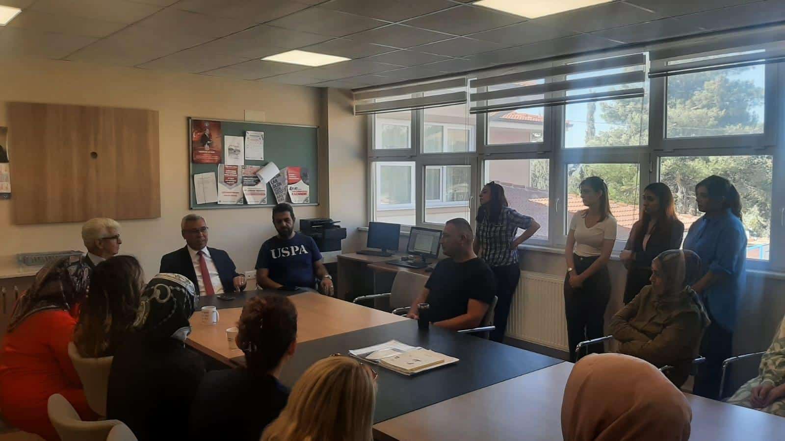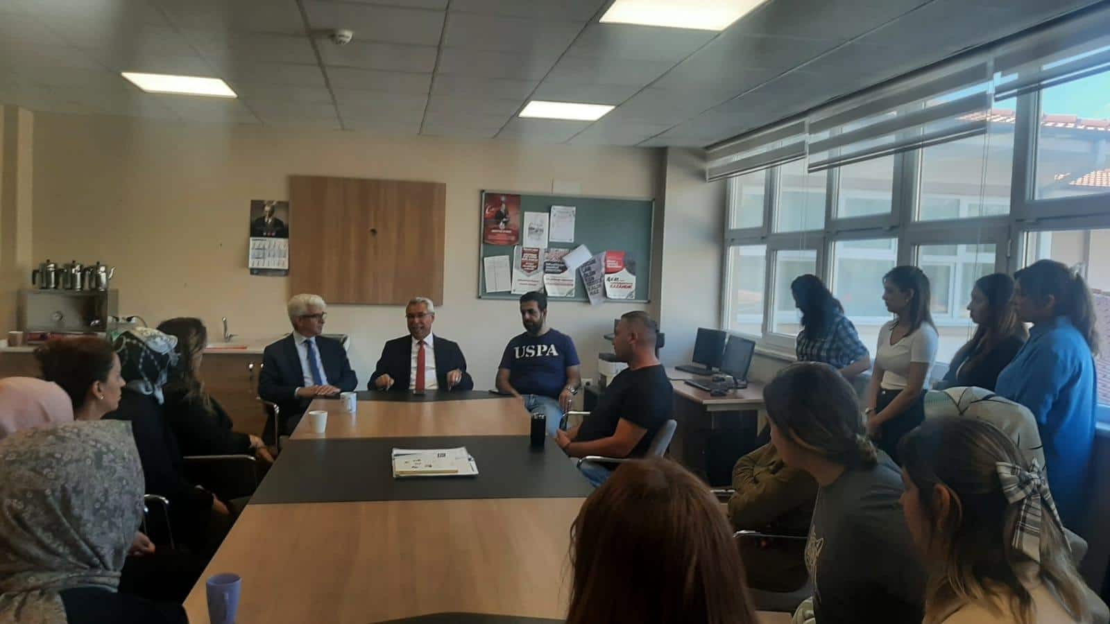 Ziyarette okul Müdürü Mahmut Bekiroğlu ve Müdür Yardımcıları Barış Yıldız ile Yunus Bayır'dan okul hakkında bilgiler alan İlçe Milli Eğitim Müdürü daha sonra öğretmenler odasında öğretmenlerle buluştu.